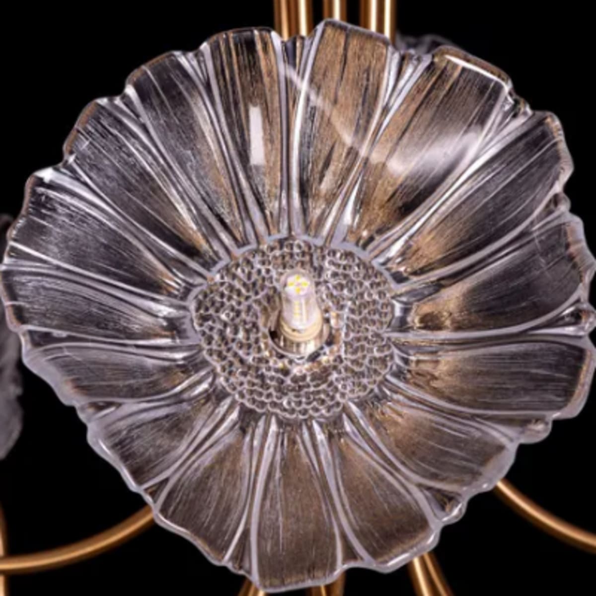 A selection of blooming flowers completes our Late For Reality chandelier, with a sleek supporting branch holding them together. Riveting in gold, the central canopy branches out into the floral motifs. Each floral motif is crafted in textured glass with an LED in the centre. A rising star in our tree branch range, this modern glass chandelier is a natural form that celebrates the beauty of detachment, inviting you to dive within.